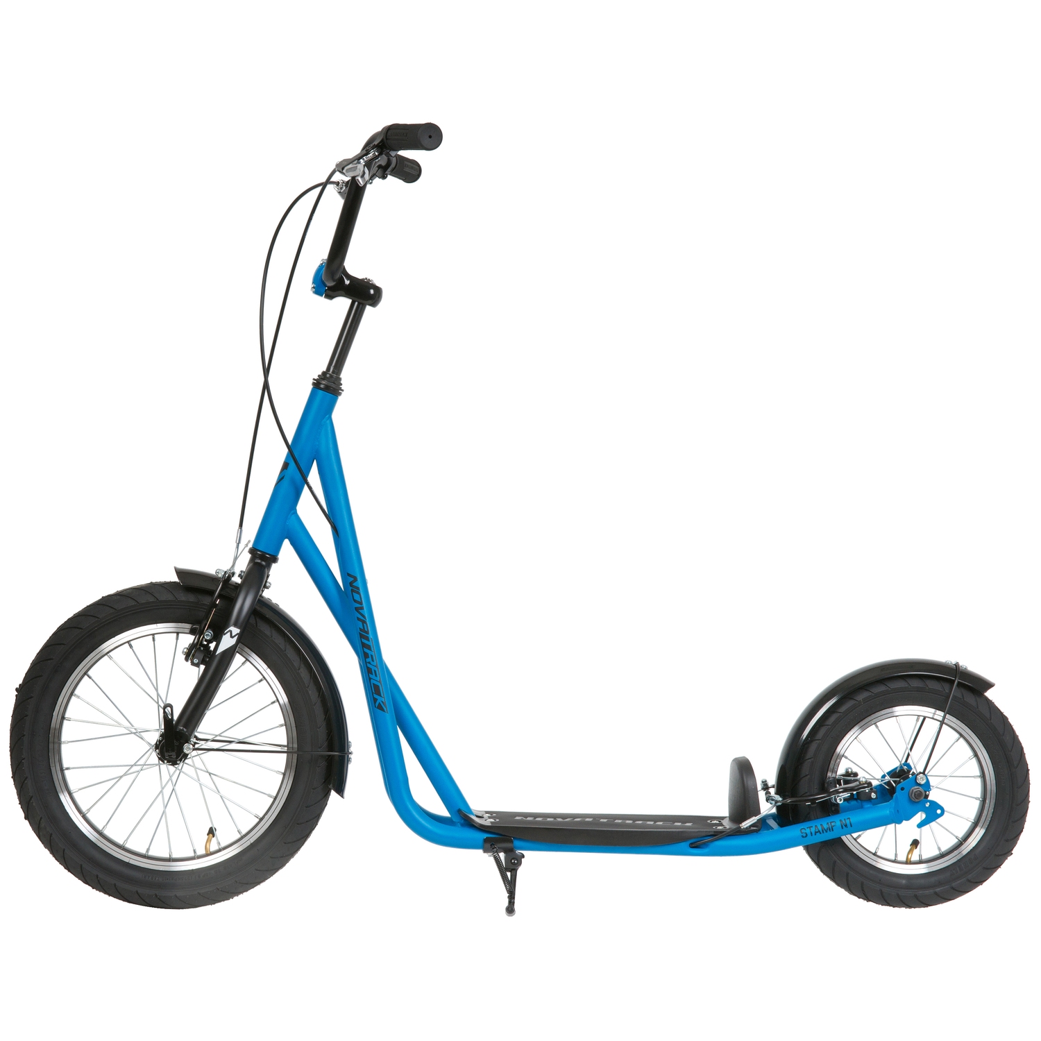 Самокат Novatrack STAMP N1 PRO порадует всех любителей активного образа жизни. Широкие надувные колеса диаметром 16 и 12 дюймов позволят кататься не только по асфальтовым дорожкам, но и с легкостью преодолевать парковые тропинки. Надежные передний и задний ручной тормоз обеспечивают безопасное торможение даже с очень крутой горки. Надувные колеса имеют ряд ощутимых преимуществ. Они бесшумны, с мягкими колёсами поездка будет мягче и комфортнее. Хорошо защищают от неровностей благодаря амортизирующим свойствам. Такие колёса комфортны при езде по неровным дорогам. В дождливую погоду надувные колеса увереннее держатся в поворотах. Они отлично тормозят и не скользят на разных поверхностях. Благодаря отличному сцеплению, помогают развивать более высокую скорость.