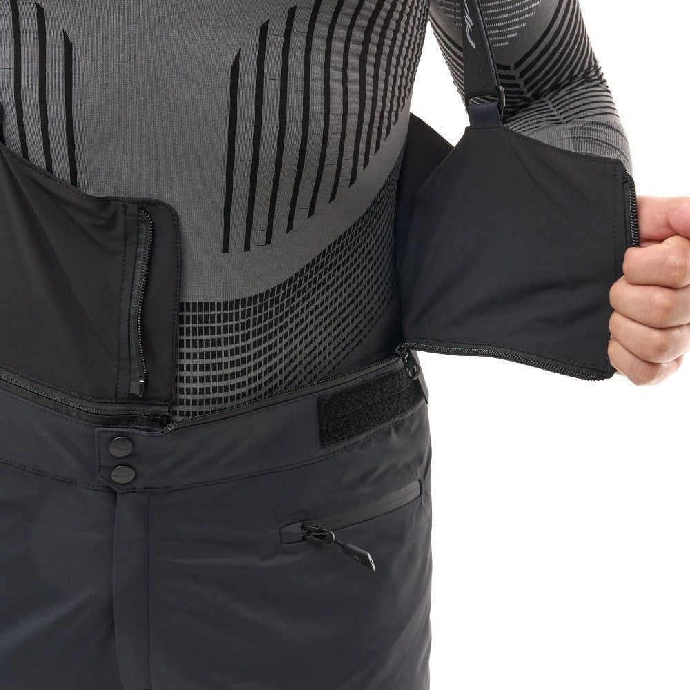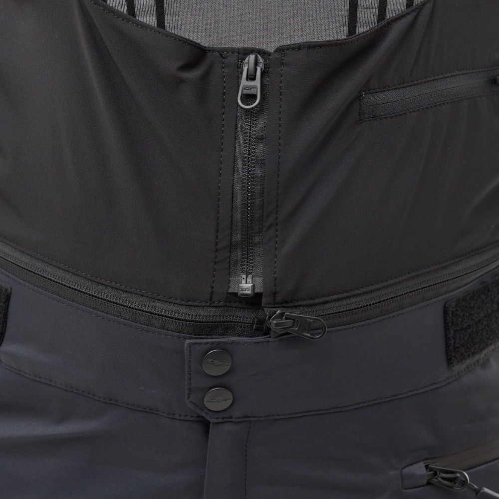 Функциональные характеристики брюков включают съёмный нагрудник на регулируемых подтяжках, что позволяет адаптировать их под индивидуальные предпочтения. Пояс регулируется по объёму с двух сторон, а в области поясницы он завышен, что обеспечивает дополнительный комфорт. Вентиляция с внутренней стороны бёдер помогает поддерживать оптимальную температуру во время активного катания.