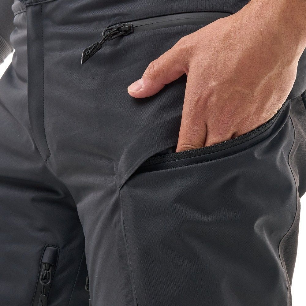 Штаны оснащены четырьмя карманами на молниях, включая один на нагруднике и два вместительных на бедрах, которые подходят для хранения карт или раций. Расширения на молниях внизу штанин облегчают надевание ботинок, а снегозащитные гетры с антискользящей полосой и петлёй на кнопке предотвращают попадание снега внутрь. Светоотражающие элементы в виде полосок повышают видимость в условиях низкой освещённости. Рекомендуемый температурный диапазон использования составляет от 0 до -20 °C.