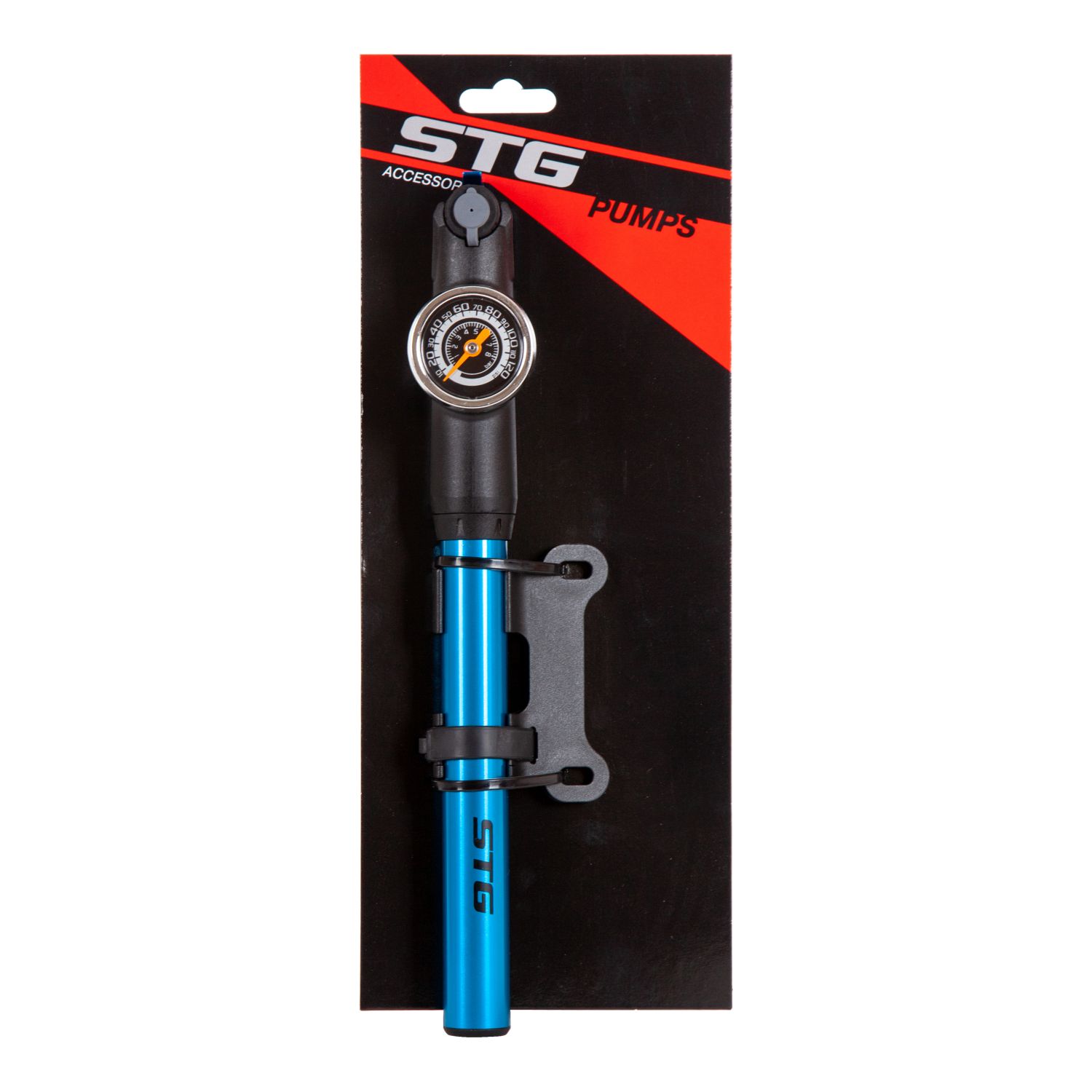Насос ручной STG GP-871E, Schrader/Presta, 1.5" манометр, шланг, алюминий, черный с синим