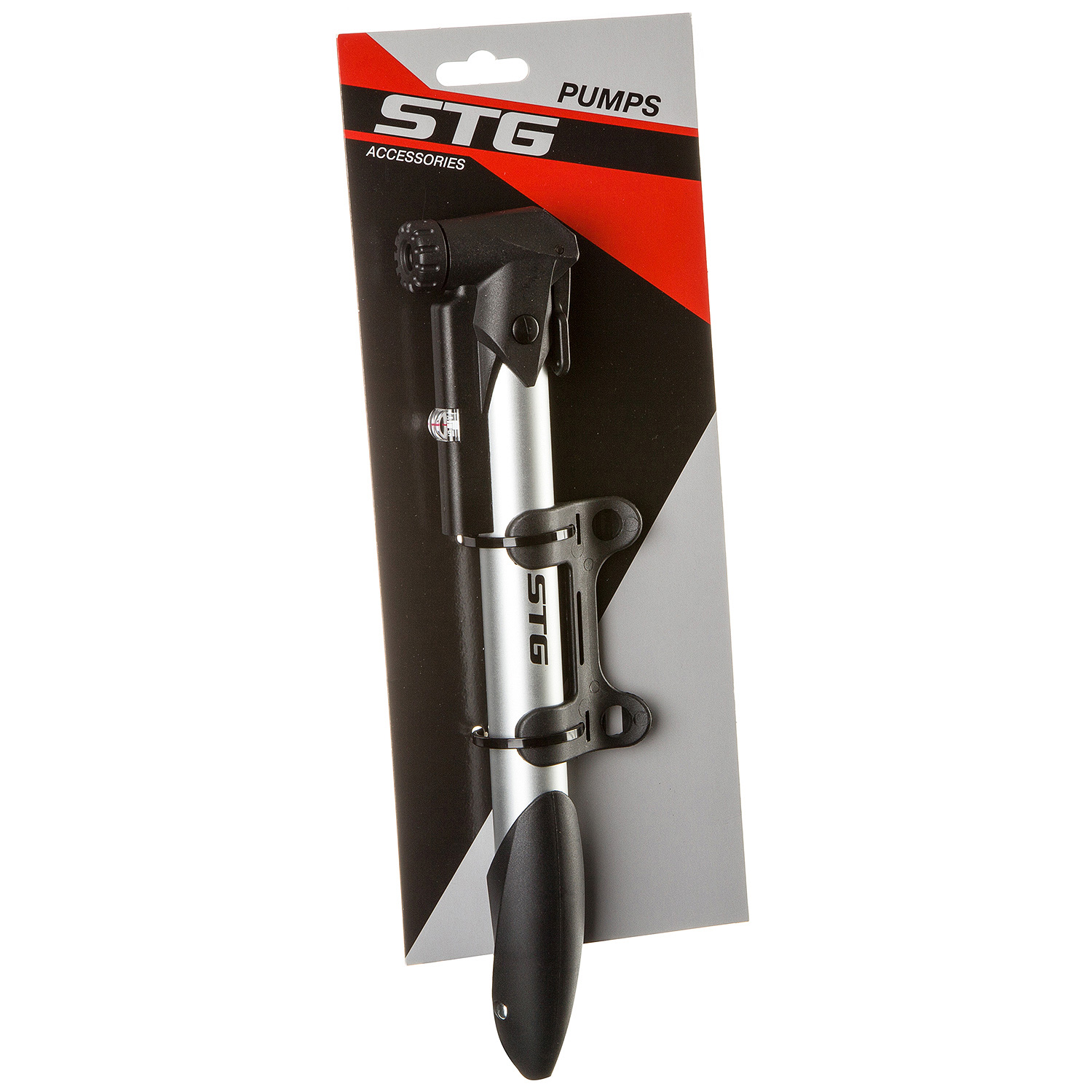 Насос ручной STG GP-91 под нипель prestaschrader, с манометром. Материал алюминий.