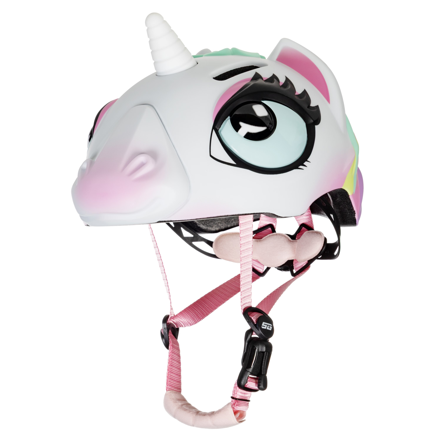 Велосипедный шлем STG Unicorn – это лёгкая и надёжная модель для юных райдеров, сочетающая эффективную защиту, продуманный комфорт и яркий дизайн. Подходит для детей с обхватом головы от 49 до 55 см. Оснащён системой регулировки и вентиляции, изготовлен по технологии inmold.
