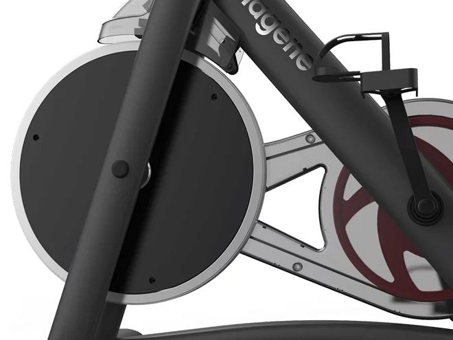 Первый маховик Magene с передним расположением, делающий тренажер более стильным и мощным. Двойная треугольная стальная конструкция велосипеда для большей устойчивости.