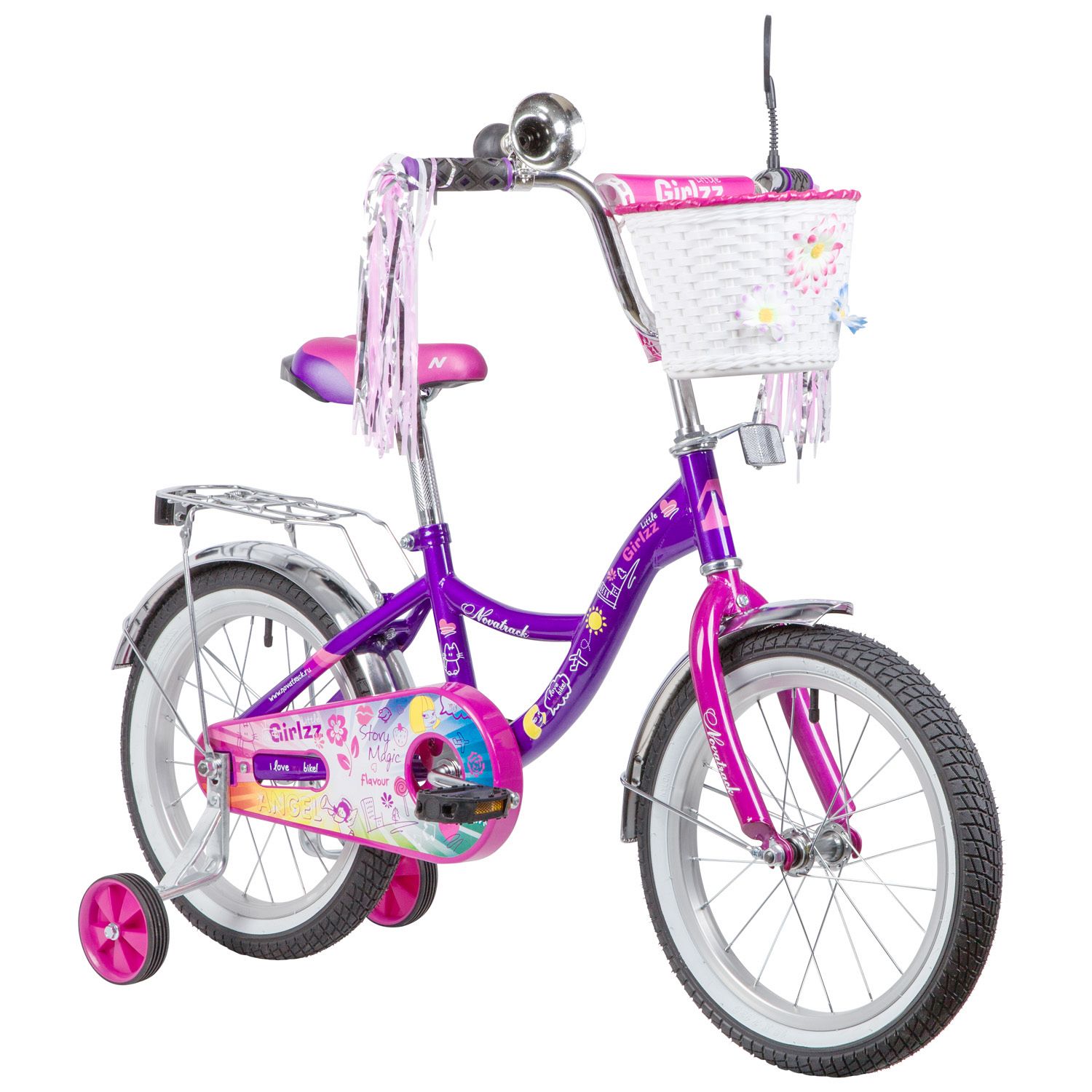 Велосипед Novatrack Little Girlzz 16" (2023), рама 10.5" (98-110 см), фиолетовый