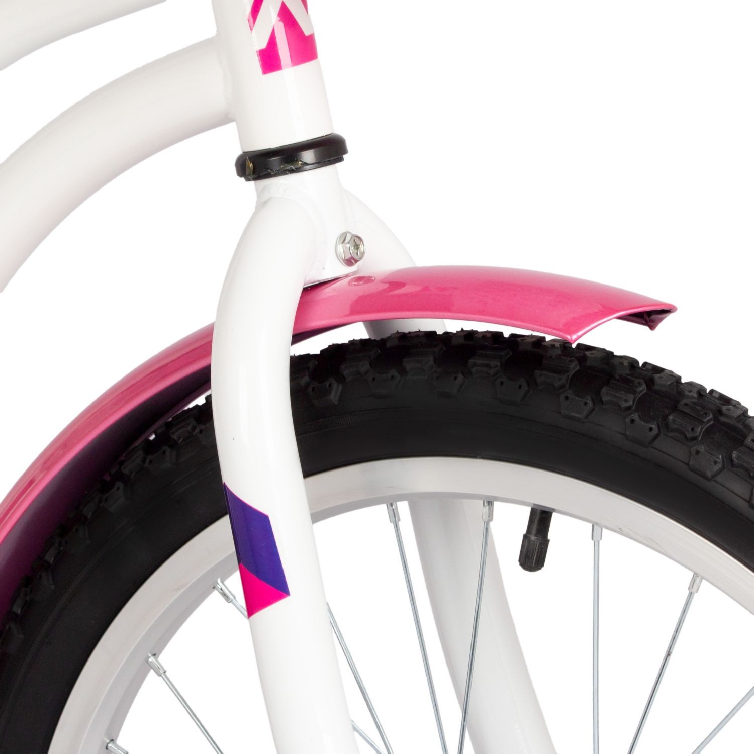 Велосипед представлен в двух привлекательных цветах – белом и фиолетовом, что делает его стильным аксессуаром для юных велосипедисток. В комплект входят: