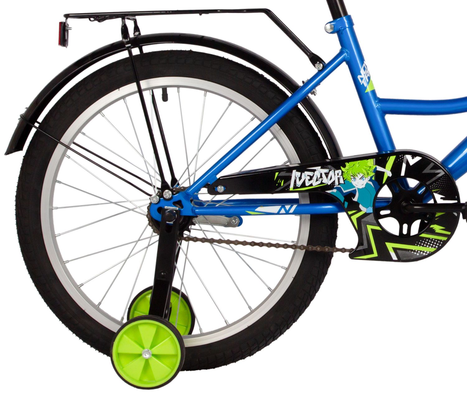 Комплектация велосипеда включает в себя грязезащитные крылья, багажник, защиту цепи и боковые дополнительные колёса, делая его ещё более безопасным и удобным для детей. Грязезащитные крылья защищают от брызг и грязи, а багажник позволяет перевозить небольшие вещи, что особенно удобно во время прогулок. Боковые колёса обеспечивают дополнительную стабильность, тем самым помогая детям чувствовать себя уверенно на дороге.