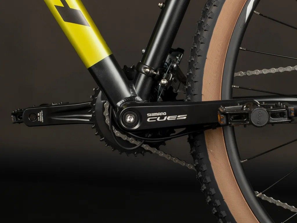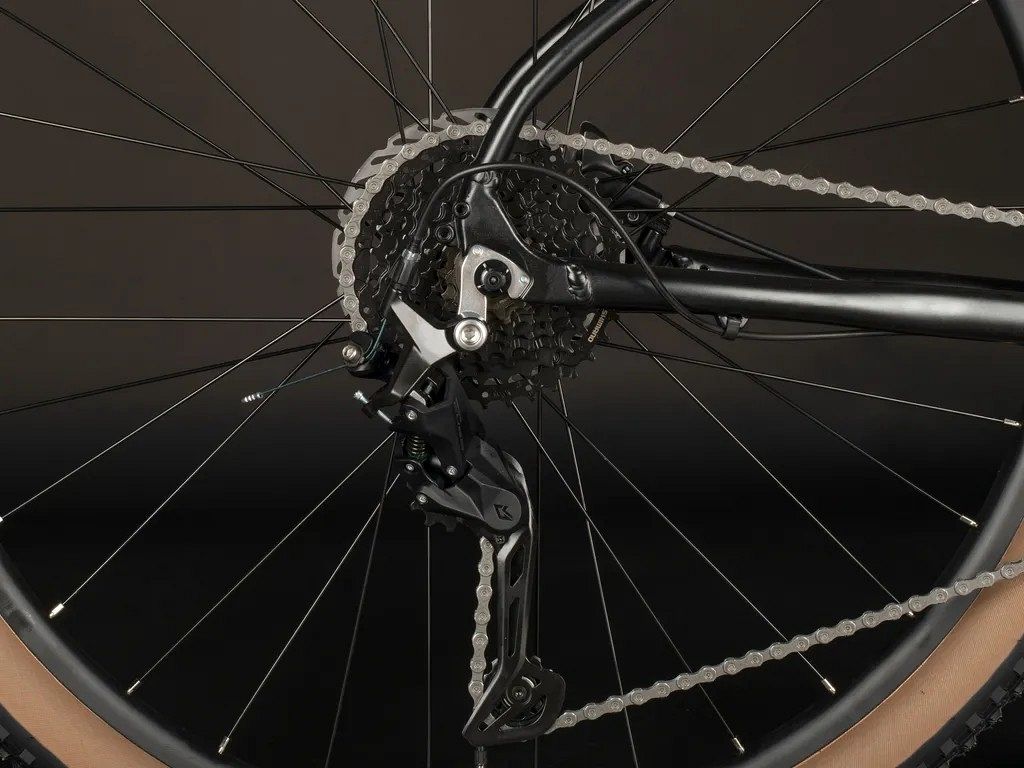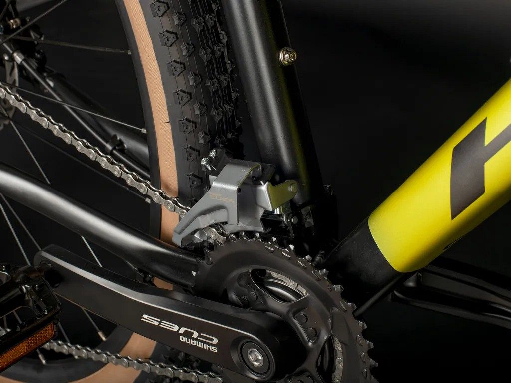 Алюминиевая рама, выполненная из сплава AL6061, отличается низким весом и высокой устойчивостью к коррозии. Она эффективно гасит вибрации и смягчает удары, значительно повышая комфорт во время езды. Велосипед оснащён 18-скоростной (2*9) трансмиссией Shimano Cues, которая позволяет велосипедисту легко адаптироваться к различным условиям и выбирать оптимальные передачи для комфортной езды. Шифтеры Shimano Cues с удобной эргономикой и оптическим индикатором передач делают процесс переключения скоростей интуитивно понятным и лёгким.