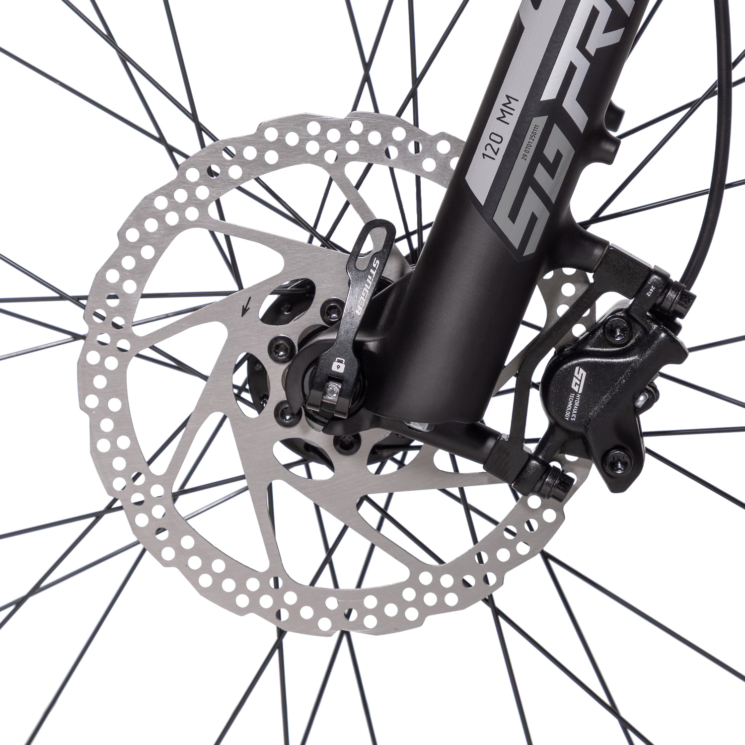 – Пружинно-масляная вилка STG Prime HLO с ходом 120 мм для отличной амортизации.
