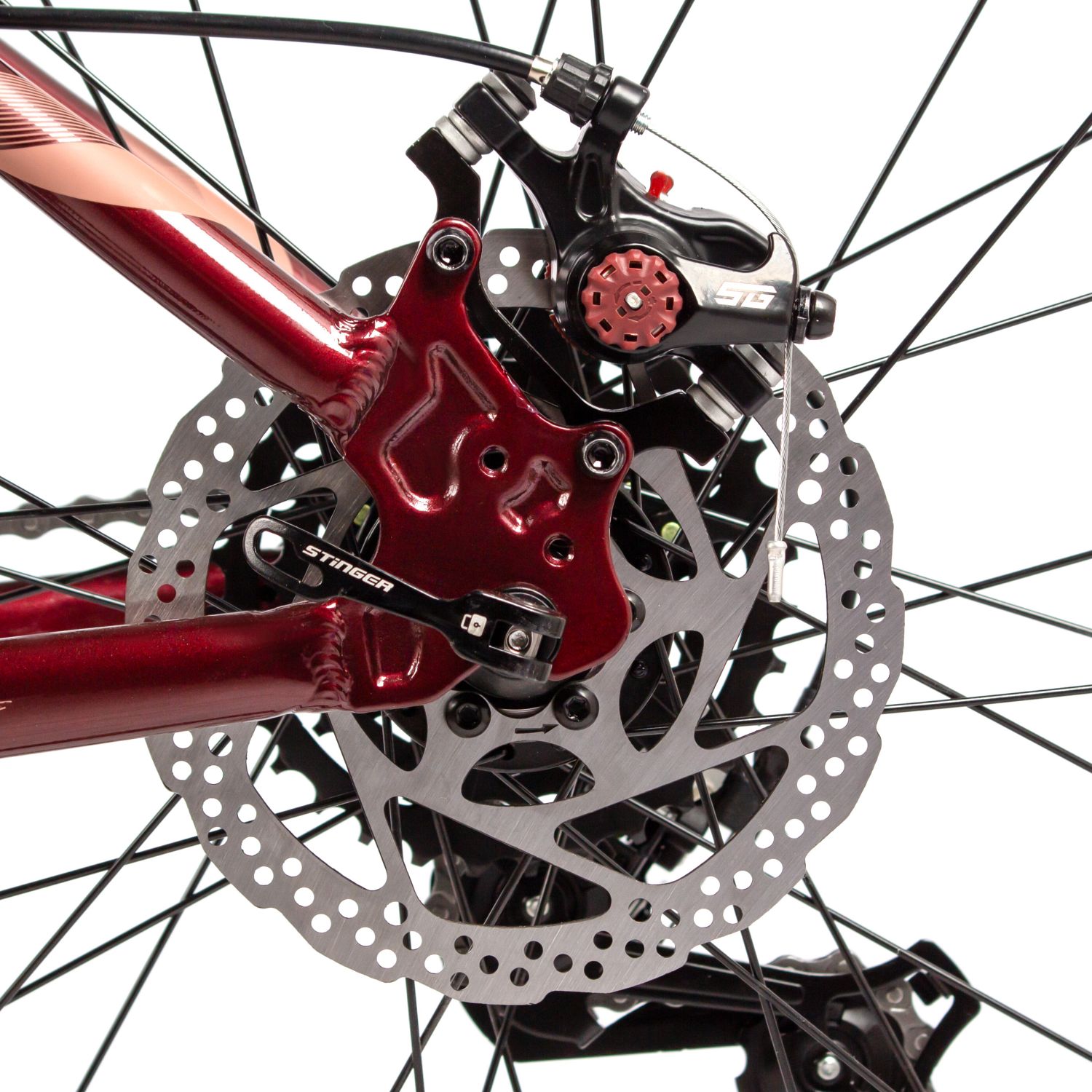 – Пружинная вилка STG Spice с ходом 110 мм для комфортного катания по неровным поверхностям.
