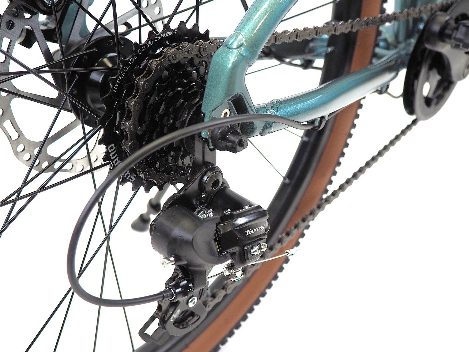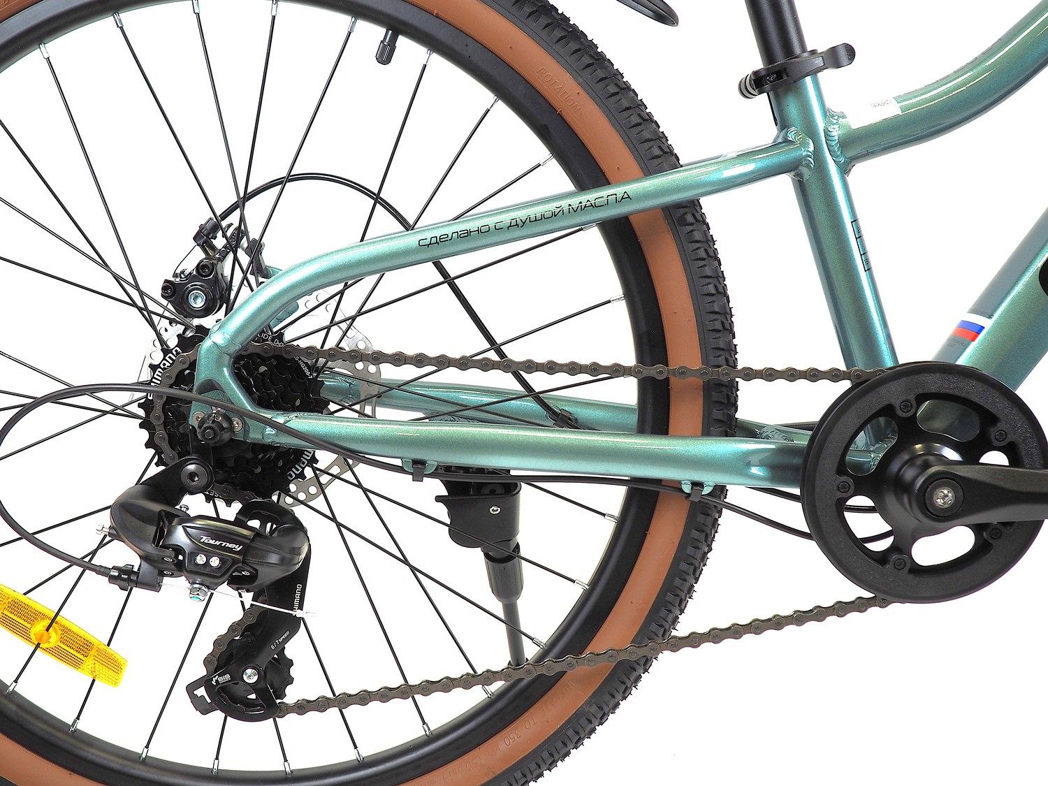 – 7-скоростная система Shimano Tourney. Позволяет легко переключать передачи и подбирать оптимальный темп движения.