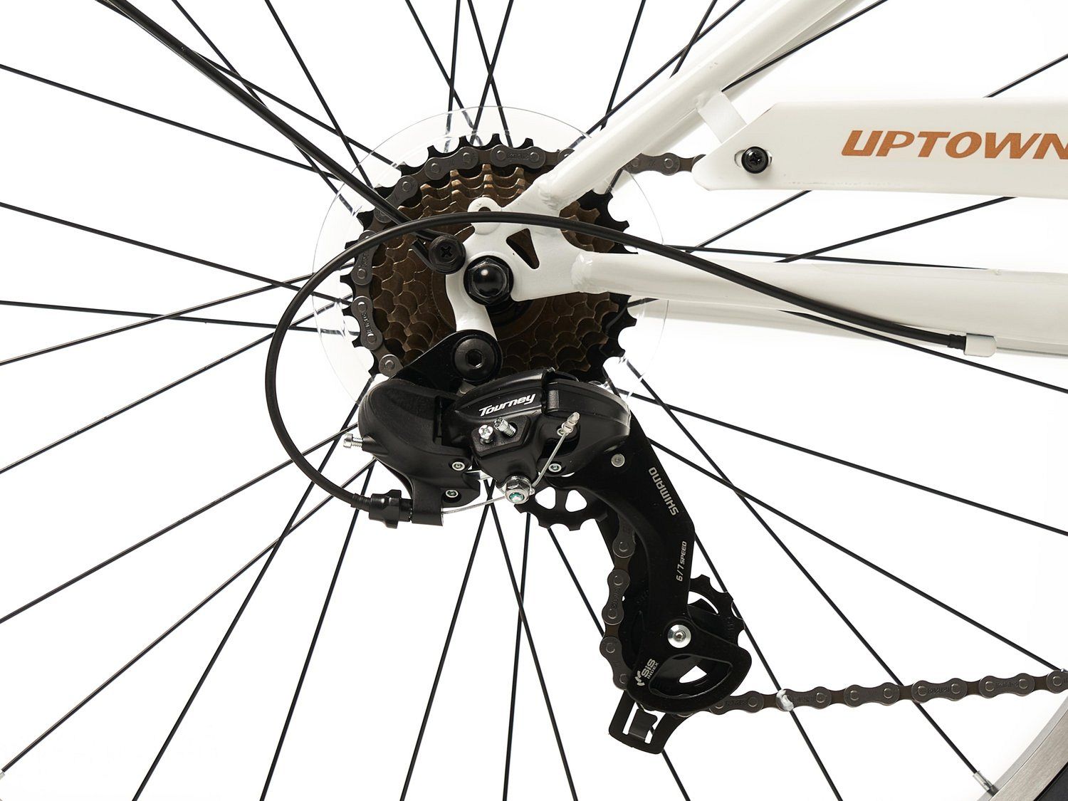 С 7-скоростной трансмиссией Shimano Tourney RD-TY300D, Spinn Uptown Ladies легко справляется с различными условиями и рельефами. Высокое качество материалов и элегантный дизайн делают этот велосипед идеальным компаньоном для городских или загородных прогулок.