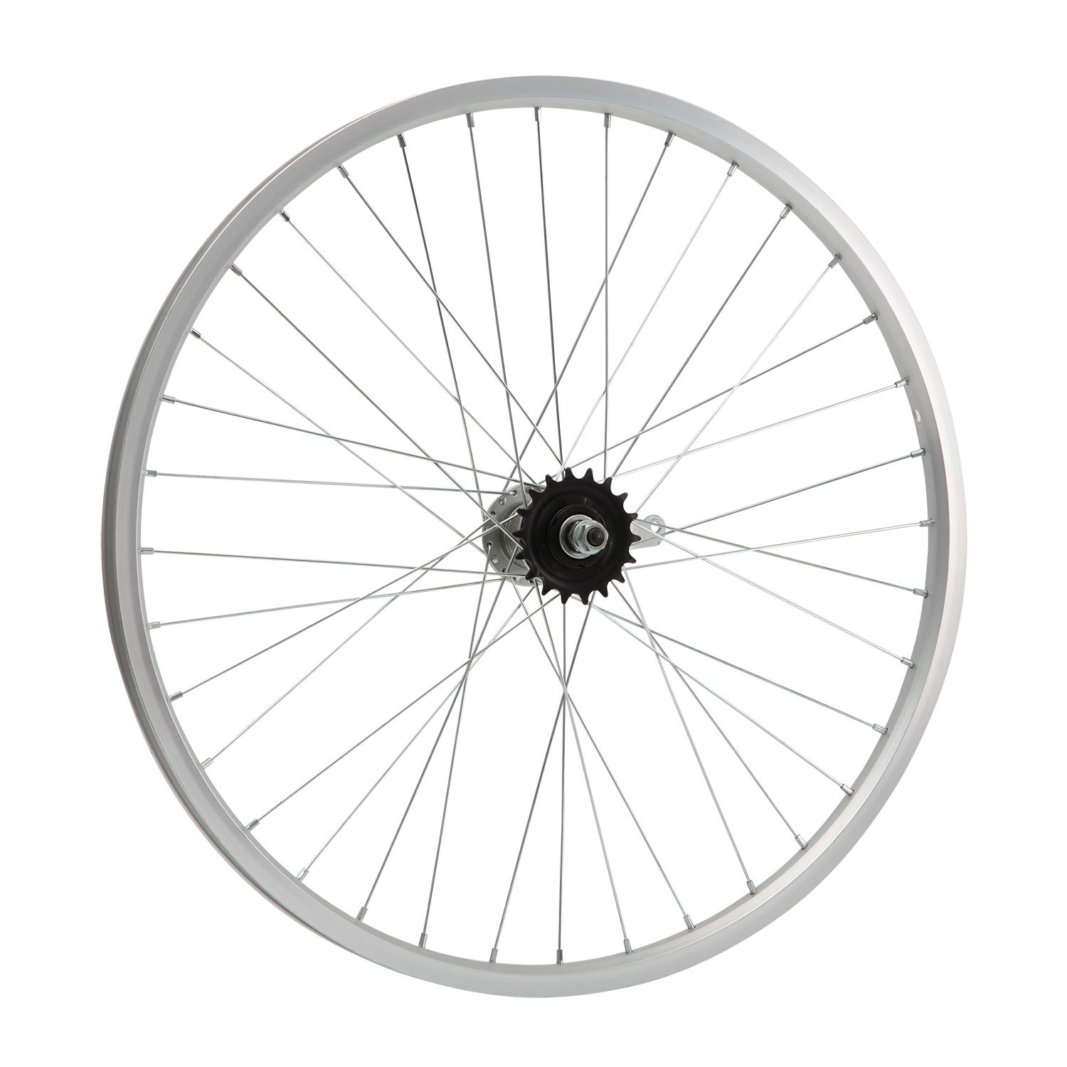 Колесо 24" заднее в сборе(без резины) с одинарным алюминиевым ободом на 36 спиц со втулкой под гайку.
