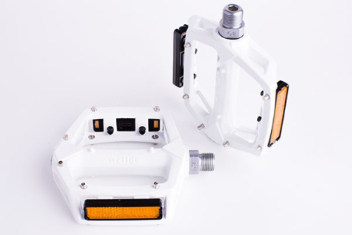 Педали велосипедные, 9/16˝ резьба, широкие, универсальные, фрезерованный алюминиевый корпус, Cr-Mo ось, закрытые промышленные подшипники, сменные резьбовые шипы под шестигранный ключ для повышения устойчивости ноги. Могут использоваться для агрессивных стилей катания