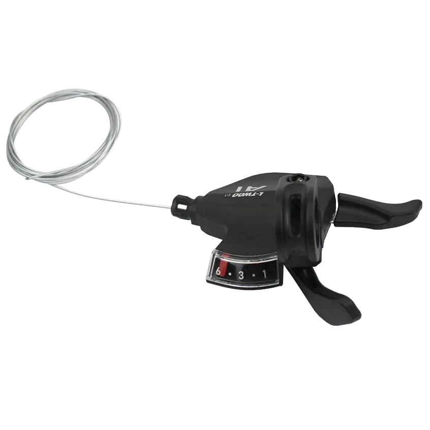 Количество скоростей – 6. Сторона установки – правая. Основной материал – композитный пластик. Индикатор выбранной передачи – есть . Длина троса – 2050 мм. Совместимость – Shimano. Цвет – черный. Вес – 134 гр.