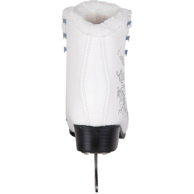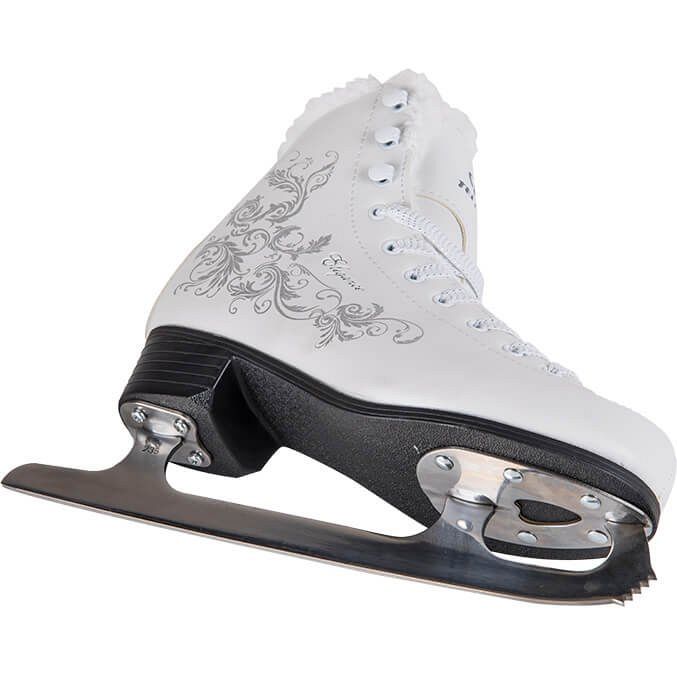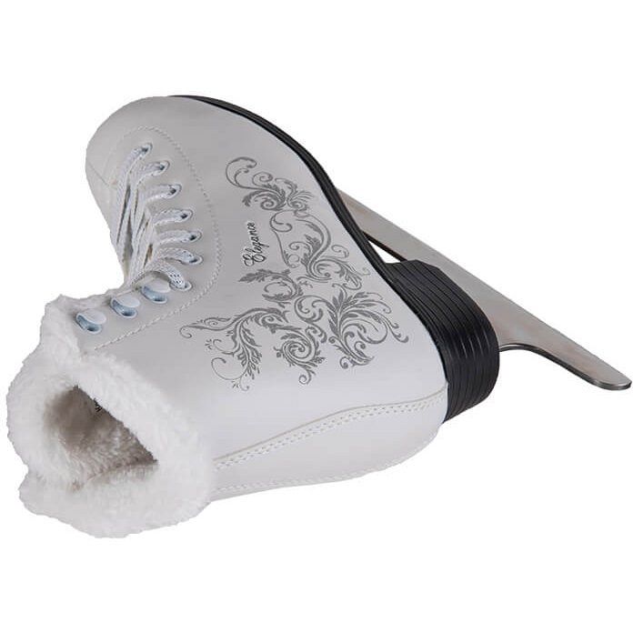 Дизайн коньков привлекает внимание благодаря изысканным узорам в виде серебра и элегантной надписи «Elegance». С такими коньками вы точно не останетесь незамеченной на катке! Удобство в использовании обеспечивается простой шнуровкой и специальными крючками в верхней части, что позволяет легко снимать и надевать коньки.