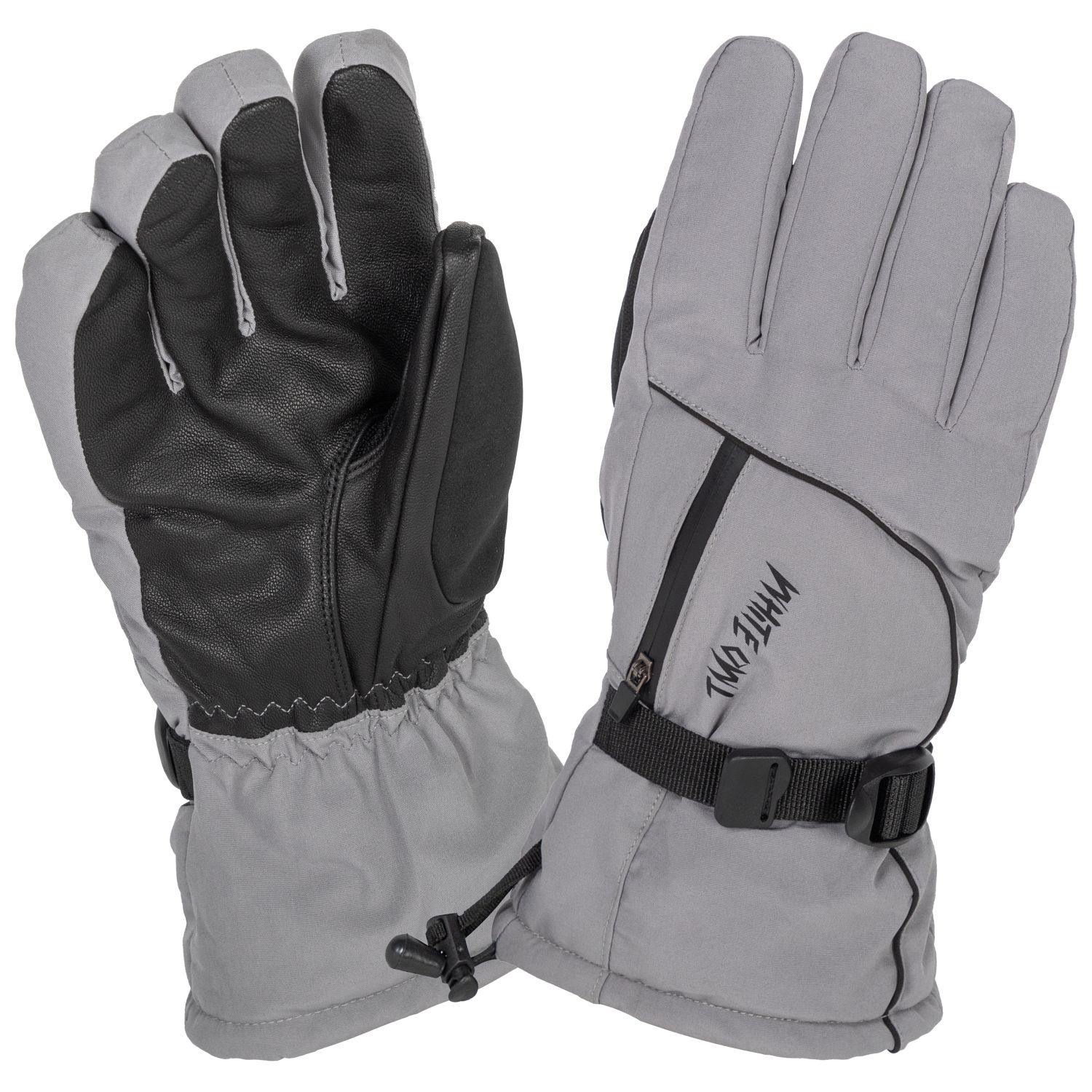 Перчатки зимние White Owl 09-1550, утепленные, с кормашком, затяжкой в кисти и резинками в манжетах, серый-черный