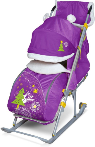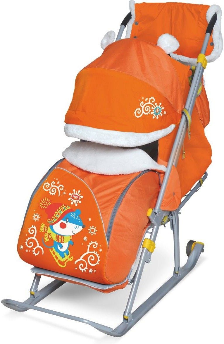 Санки-коляска "Ника детям 6" Елочка с зайцами баклажан НД6, оранжевый