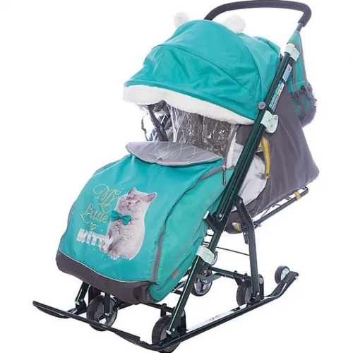 Санки-коляска "Ника Детям" НД 7-2 ("Котенок", изумрудный)