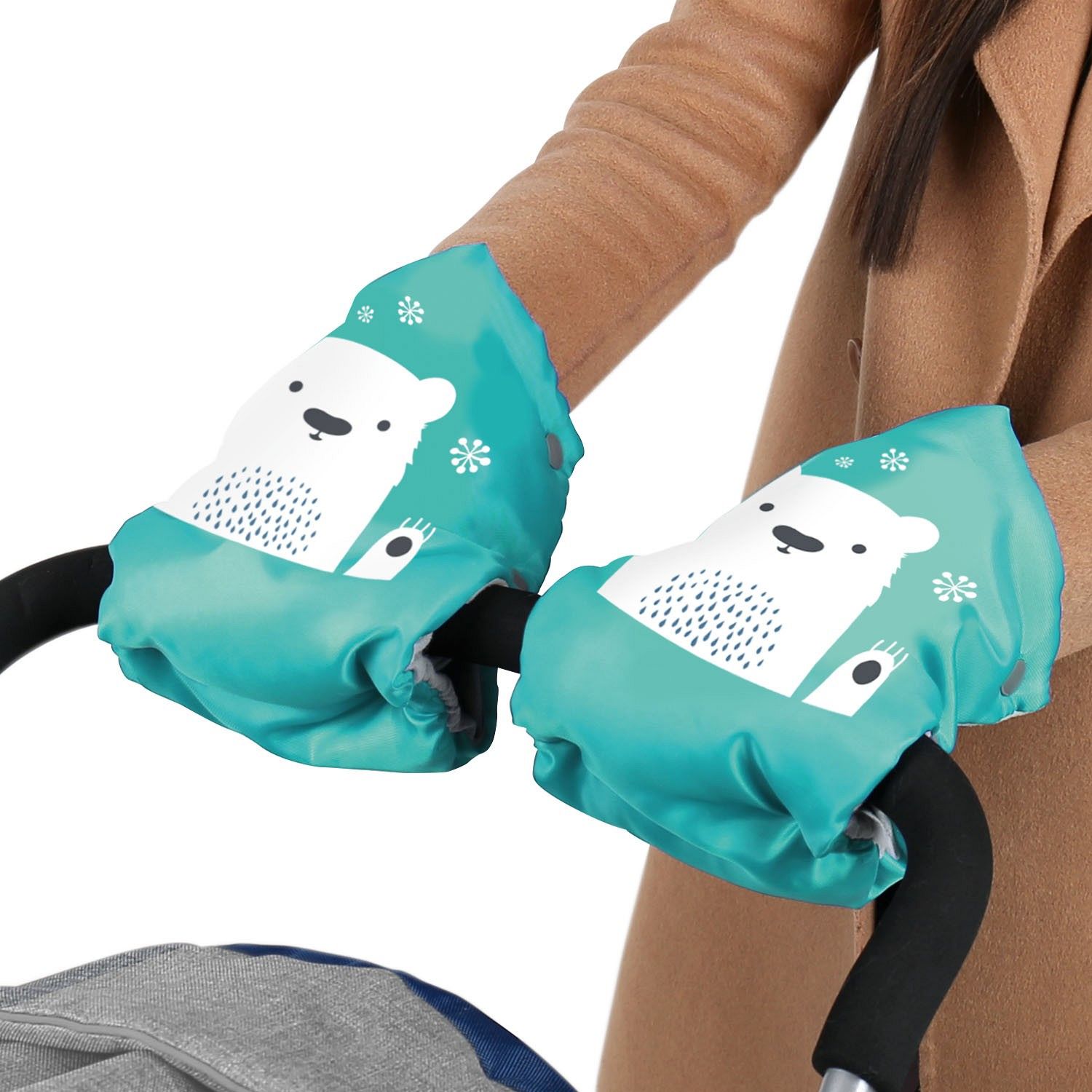 Крепление на кнопках позволяет легко и быстро закрепить рукавички на ручке санок или коляски. Это делает их использование максимально удобным и практичным, позволяя родителям быстро подготовиться к прогулке и не тратить время на сложные манипуляции.